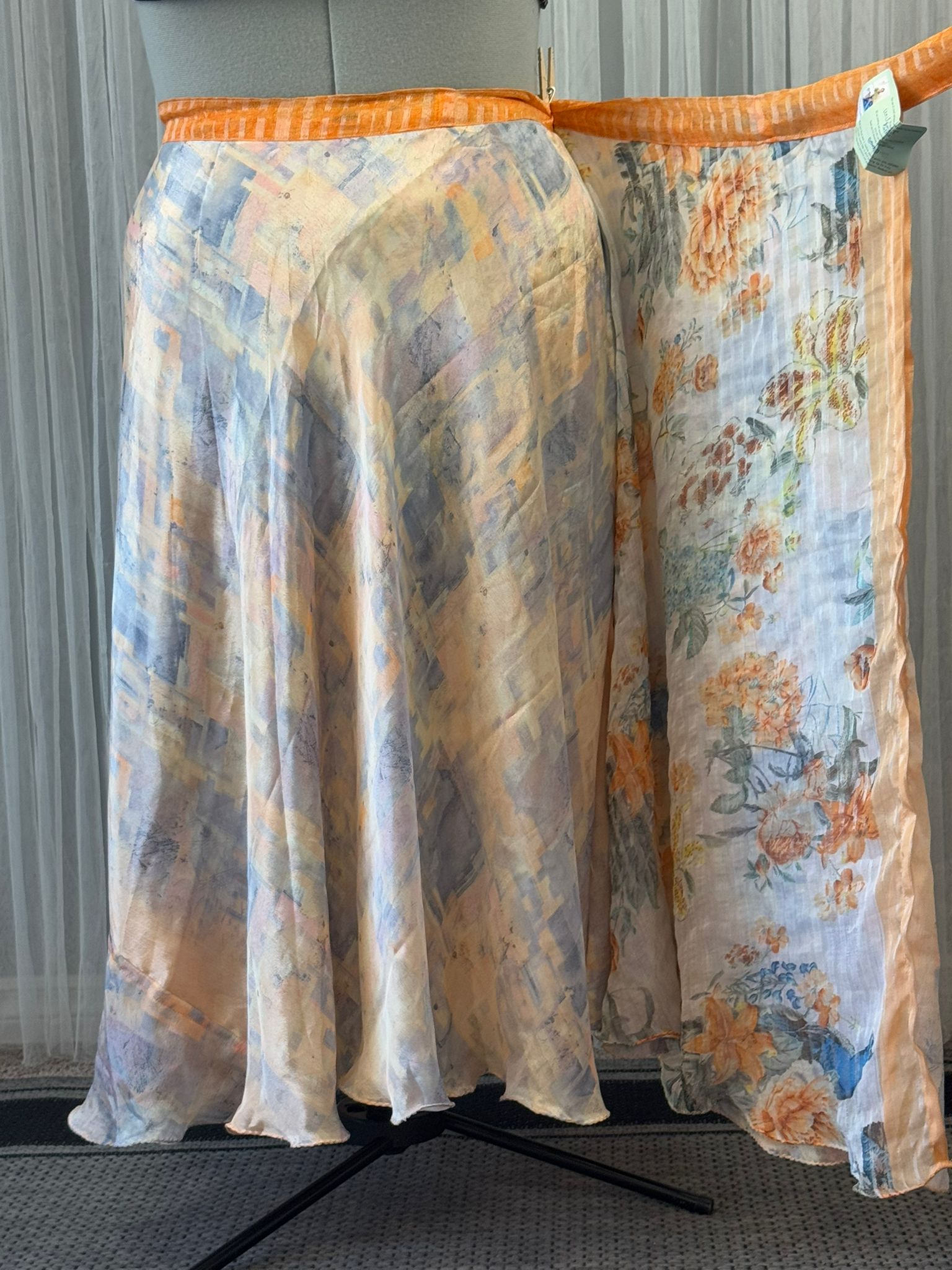 Fabrics used in this skirt:Top layer chiffon, base layer crepe silk