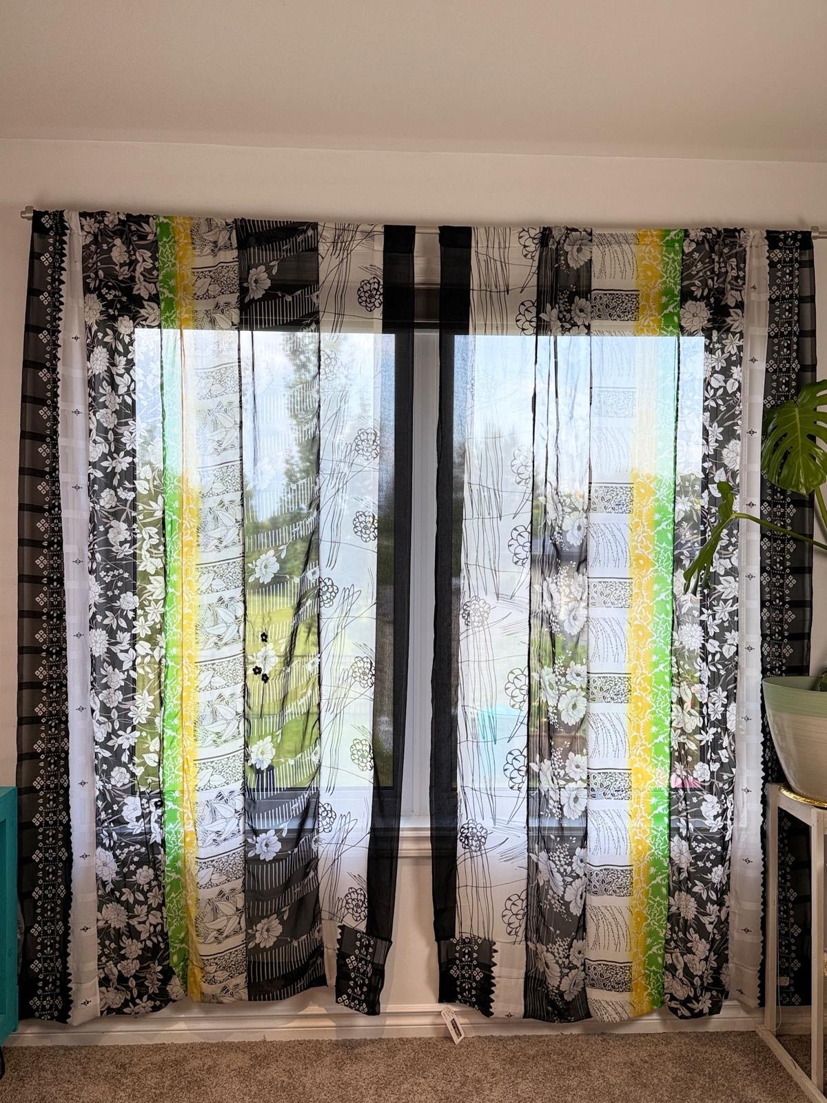 ***Please note that while all curtain panels in this curtain product listing are made from the same saree strips, the placement of the strips may vary. You may not receive the exact set shown in the image, but rest assured you will receive a set very similar, crafted from the same saree strips****