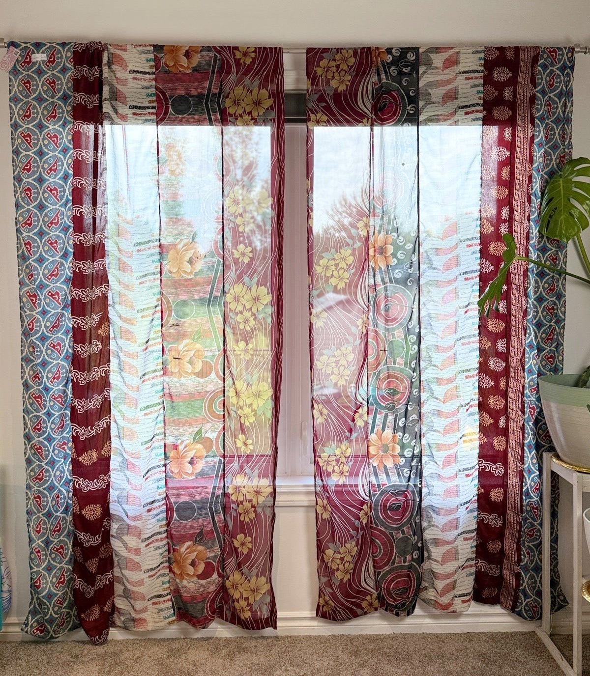 ***Please note that while all curtain panels in this curtain product listing are made from the same saree strips, the placement of the strips may vary. You may not receive the exact set shown in the image, but rest assured you will receive a set very similar, crafted from the same saree strips****