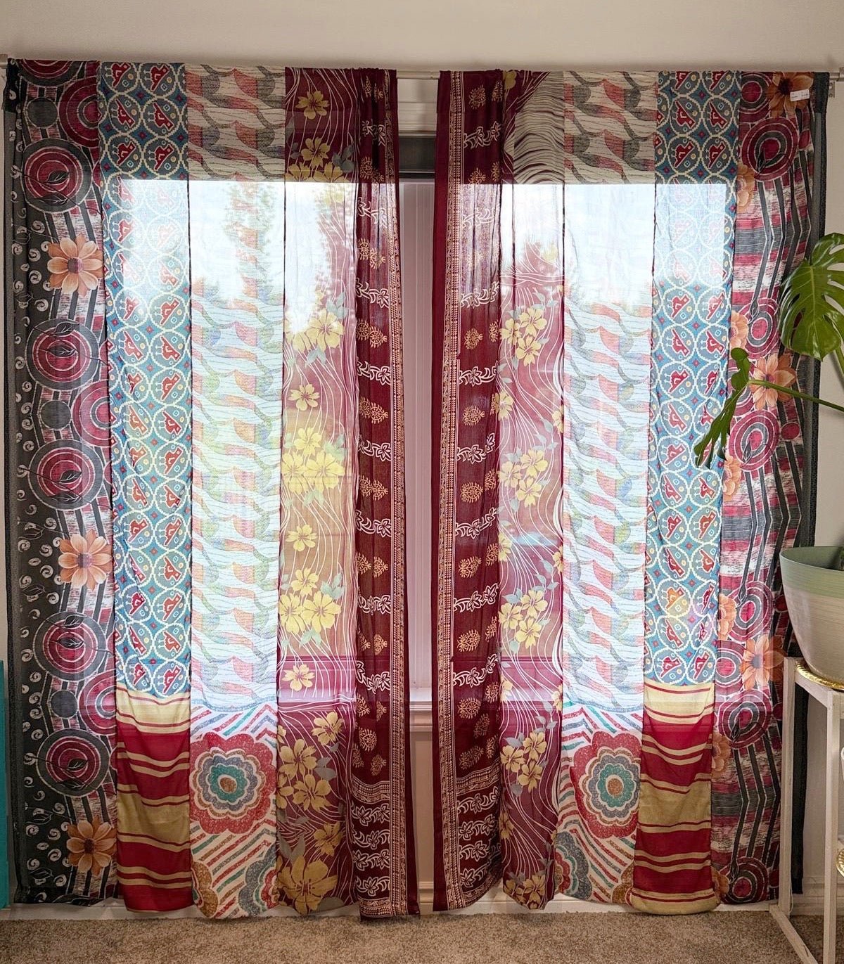 ***Please note that while all curtain panels in this curtain product listing are made from the same saree strips, the placement of the strips may vary. You may not receive the exact set shown in the image, but rest assured you will receive a set very similar, crafted from the same saree strips****