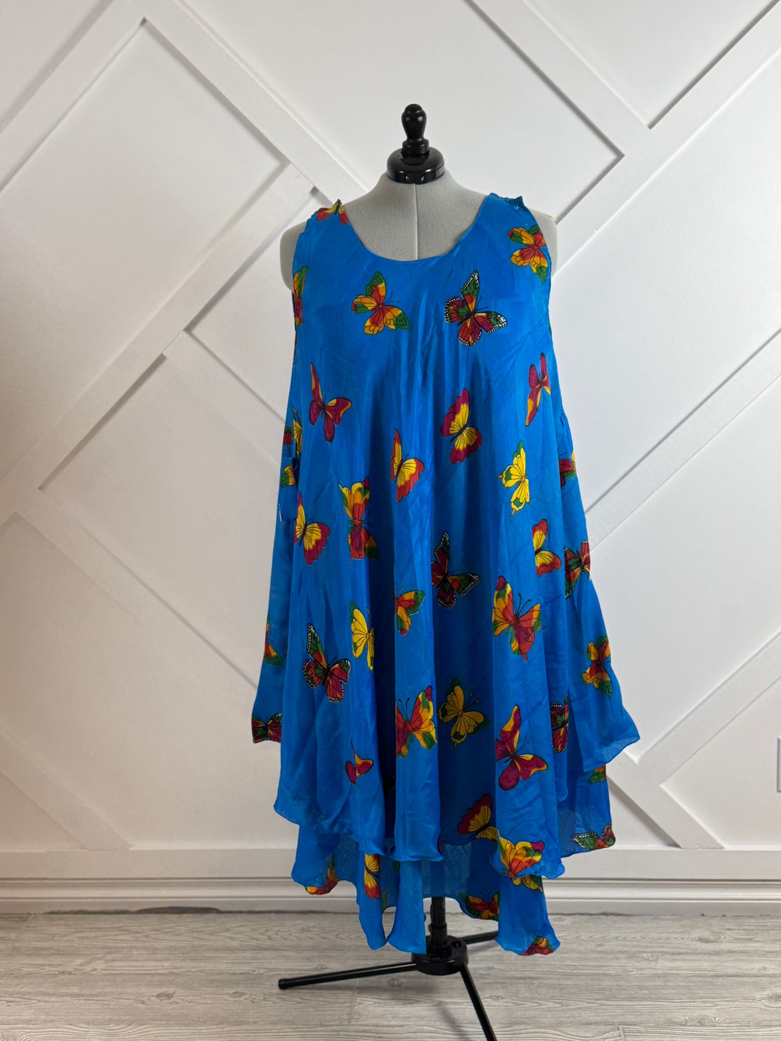 This lovely dress is made of beautiful, one of a kind saree fabrics. Our artisans carefully choose sarees that are soft, elegant and luxurious to make these dresses.